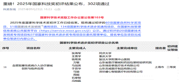 2025年9月22日,国奖办公2025年国家科技奖初评结果。共302项成果通过初评,含60项自然科学奖项目、51项技术发明奖通用项目、134项科学    技术进步奖通用项目,专用项目57项。