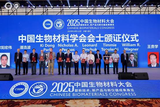 开幕式上举行了2025年中国生物材料学会会士颁证仪式。中心主任王贵学教授入选中国生物材料学会会士。