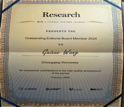中心主任王贵学教授被评为Research期刊的优秀编委